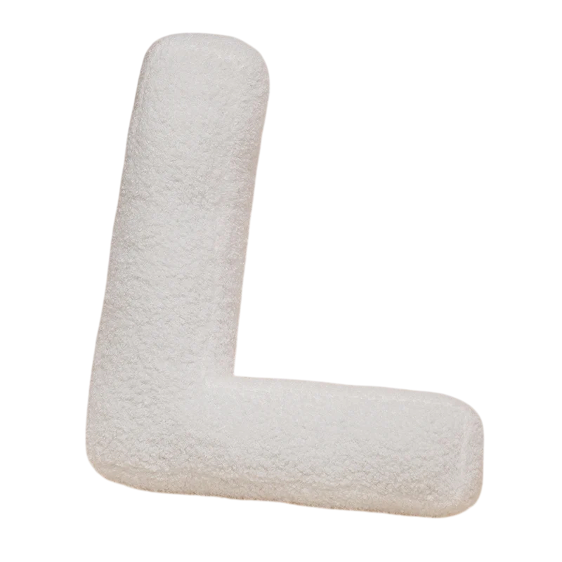 Plyšový polštář ve tvaru písmene L představuje jednoduchý a zároveň praktický dekorativní doplněk do interiéru. Díky svému tvaru působí nenápadně, ale přesto dokáže doplnit vzhled prostoru na posteli, gauči nebo křesle. Je vhodný jak pro samostatné použití, tak i pro kombinaci s dalšími písmeny.
