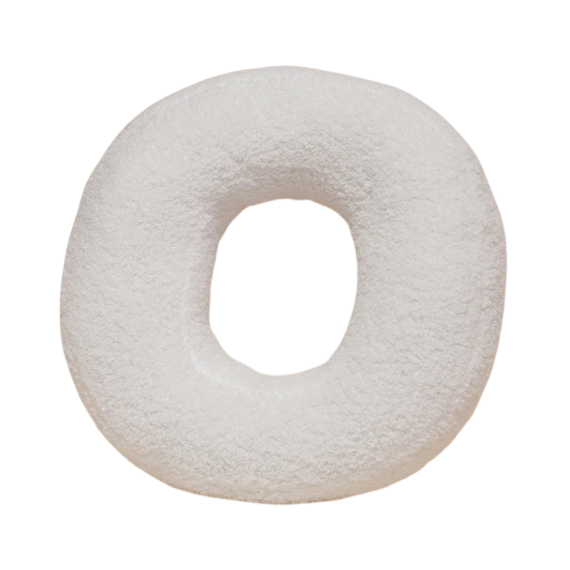 Plyšový polštář ve tvaru písmene O o velikosti 40 cm. Měkký dekorační doplněk s výplní z PP bavlny vhodný na postel, gauč i do interiéru. Celý popis