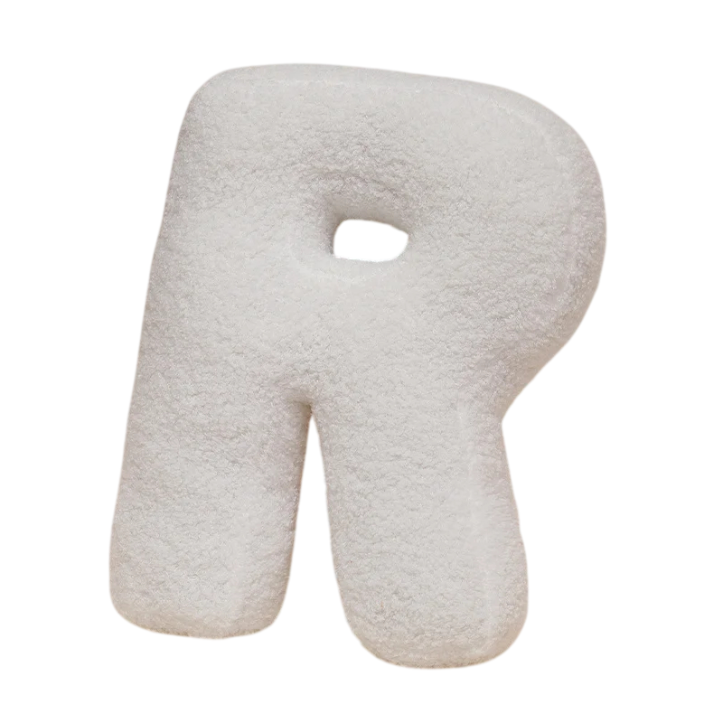 Plyšový polštář ve tvaru písmene R je originálním doplňkem, který dodá interiéru osobitý charakter. Díky svému výraznému tvaru může sloužit jako samostatná dekorace nebo jako součást kombinace více písmen. Snadno zapadne na postel, gauč nebo křeslo a doplní celkový vzhled prostoru.