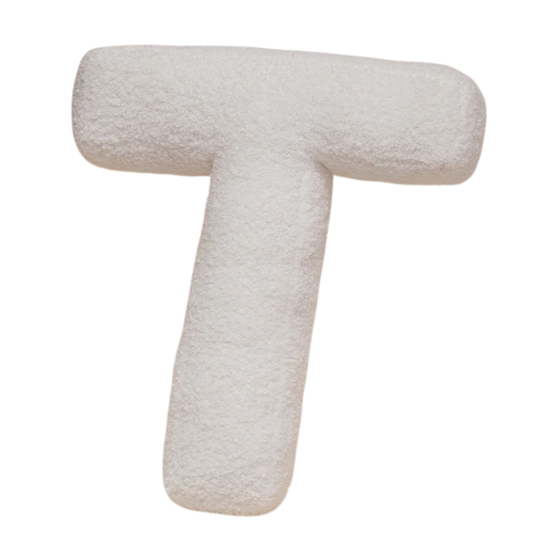 Plyšový polštář ve tvaru písmene T představuje jednoduchý a zároveň výrazný doplněk do interiéru. Díky svému tvaru se snadno stane součástí dekorace na posteli, gauči nebo křesle a přirozeně zapadne do různých stylů bydlení. Lze jej využít samostatně i v kombinaci s dalšími písmeny pro vytvoření originální kompozice.
