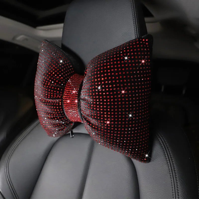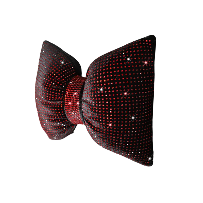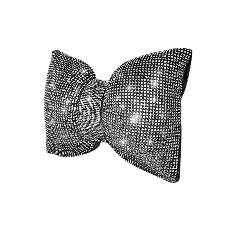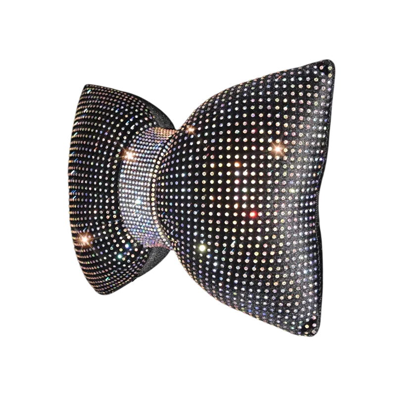 Dekorativní polštář do auta ve tvaru mašle je výrazným doplňkem interiéru, který zaujme na první pohled. Díky svému netradičnímu provedení s třpytivými kamínky přináší do prostoru vozidla originální vzhled a zároveň slouží jako praktická opora při sezení. Vhodně se umisťuje na opěrku hlavy nebo do oblasti zad podle potřeby.