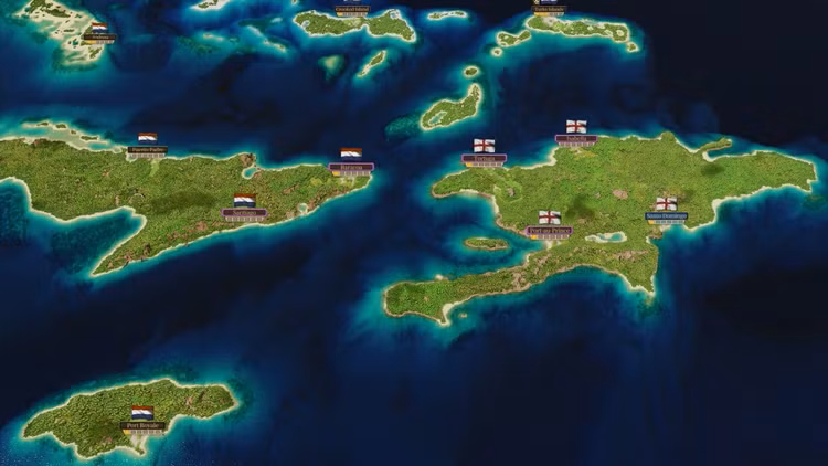 Rozvíjejte produkční řetězce spojující více ostrovů a vytvářejte složité obchodní cesty napříč Karibikem, které pokrývají stále rostoucí potřeby příslušných měst. Využijte podrobnou mořskou mapu, abyste se vyhnuli regionům s bouřlivým počasím, útesům nebo mělkým vodám. Plňte úkoly pro místokrále svého národa a získejte více slávy, abyste odemkli městské budovy, lodě a další. Dobývejte města soupeřících národů nebo lovte jejich flotily pomocí znaku a zároveň dávejte pozor na piráty a další lupiče.