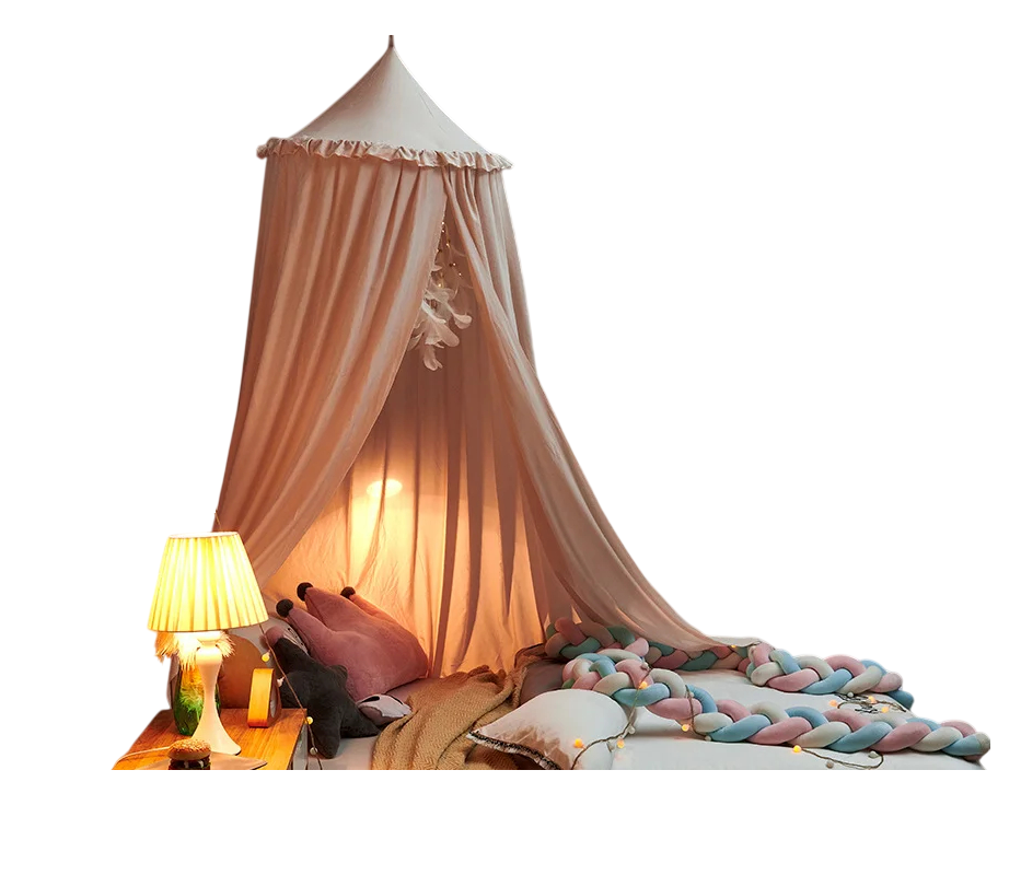 Postelový baldachýn představuje praktický i estetický doplněk do ložnice nebo dětského pokoje. Zavěšuje se nad postel a vytváří příjemný, částečně uzavřený prostor, který přispívá k většímu pohodlí během odpočinku. Díky jemné textilii působí lehce a zároveň poskytuje určitou ochranu před okolními vlivy.