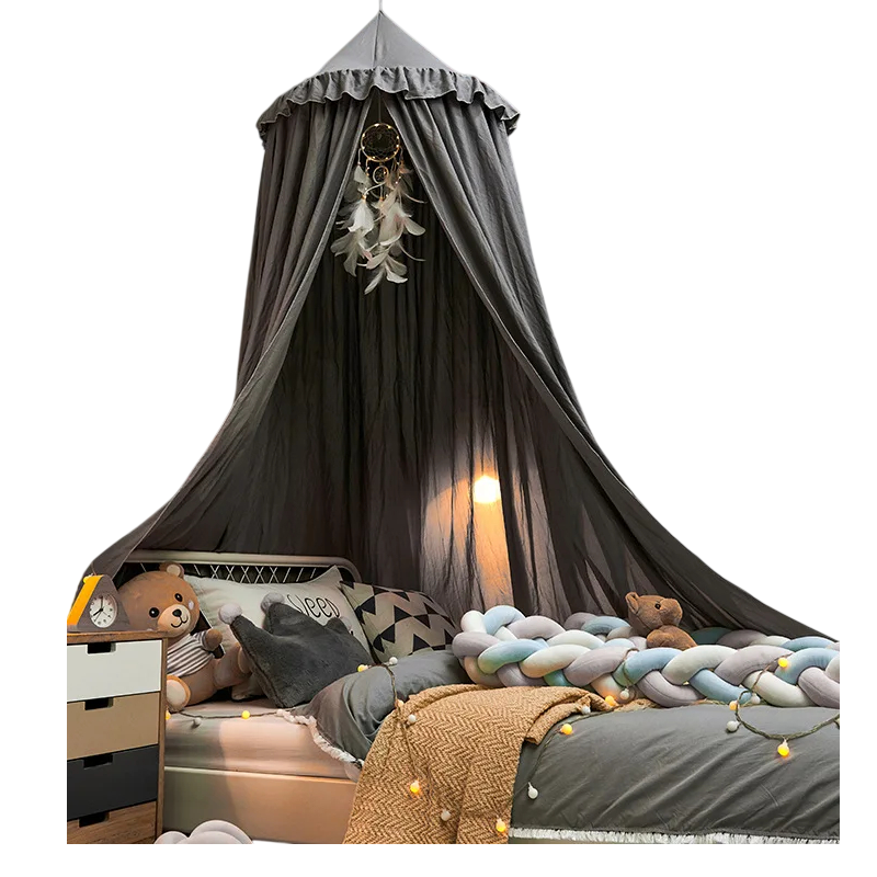 Použití je jednoduché – baldachýn se zavěsí nad postel a okamžitě vytvoří útulný prostor. Hodí se pro různé typy postelí a díky svému provedení může sloužit i jako dekorativní prvek v dětském pokoji.