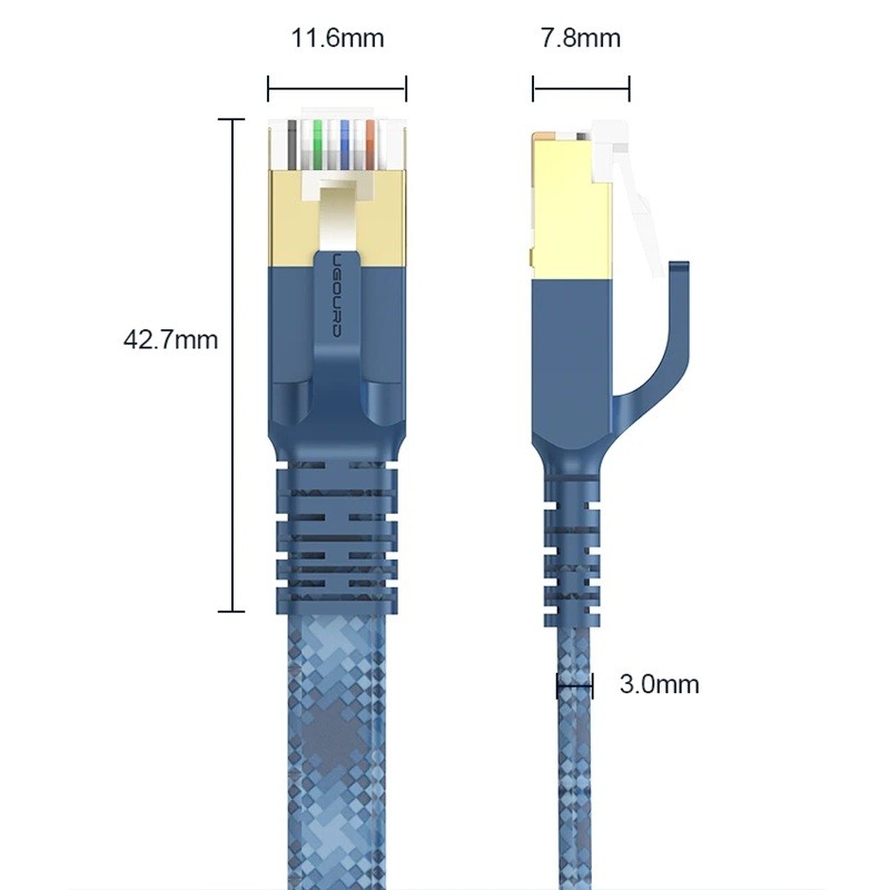 Praktický plochý síťový kabel CAT 8 40Gbps 10 m nylonový opletený RJ45 2000MHz modrý pro propojení PC routeru a konzolí