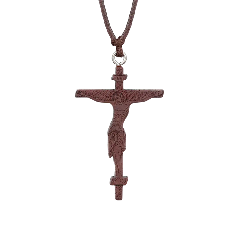 Dřevěný náhrdelník s pravoslavným křížem a jemným vyřezávaným motivem. Nastavitelná délka zajišťuje pohodlné nošení. Celý popis