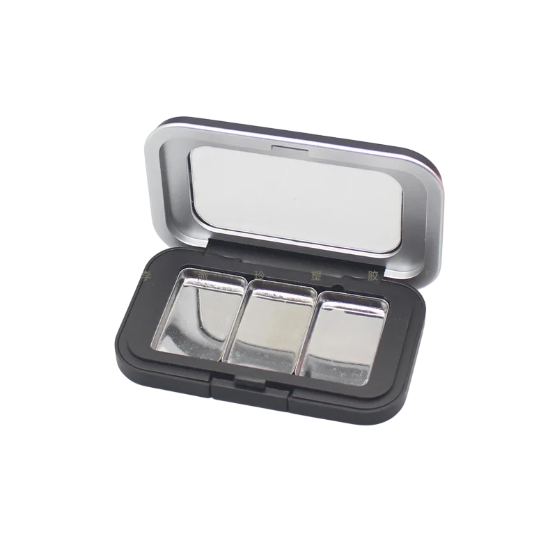 Prázdný plastový obal na kosmetiku se 3 okénky 80,2 × 50 mm kompaktní plastová krabička černá s průhledným víkem na stíny
