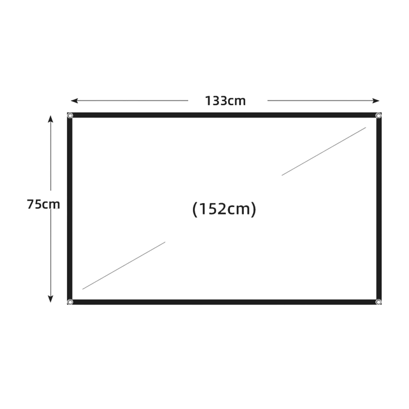 Přenosné skládací projekční plátno 152 cm 60" 16:9 Bílé plátno 133x75 cm pro vnitřní i venkovní použití Podpora laserové projekce
