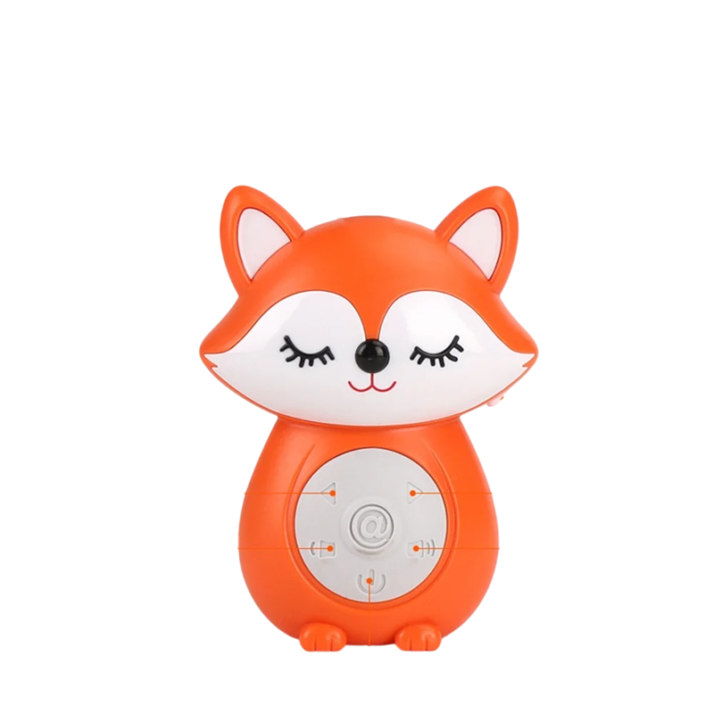 Přenosný stroj na uspávání dětí s časovaným vypnutím, 3 skladby s bílým šumem, dvě skladby světelné hudby, motiv lišky, 12 x 10 x 9 cm