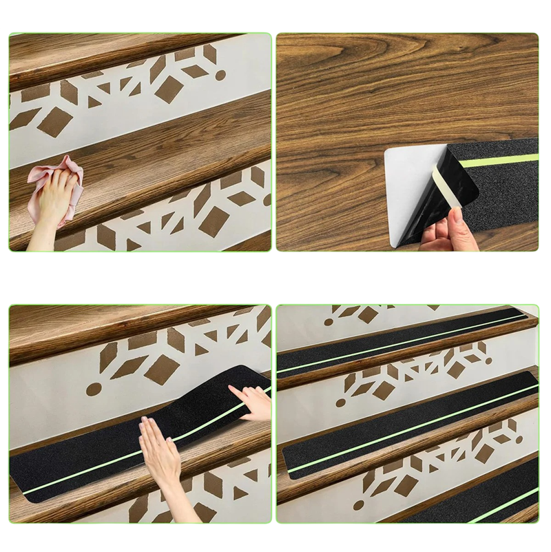 Páska kombinuje funkci protiskluzové ochrany a viditelného značení. Ve dne je dobře rozpoznatelná a v noci se její efekt ještě zvýrazní. Díky tomu pomáhá snížit riziko uklouznutí a zároveň usnadňuje pohyb v tmavém prostředí. Je vhodná pro domácnosti, vstupy do budov nebo jiné prostory se schody.
