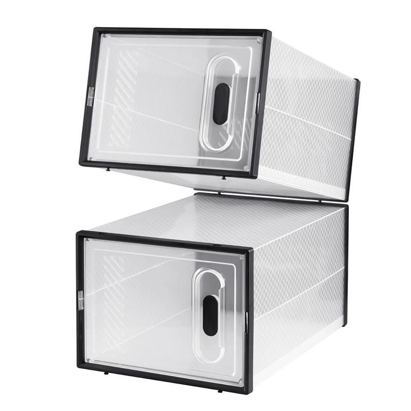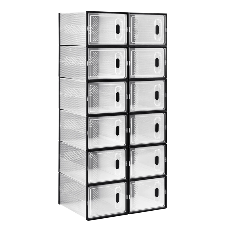 Průhledný černý skládací organizér na boty 12 boxů 35x25x19 cm Odolné plastové úložné boxy z PP pro přehledné skladování obuvi