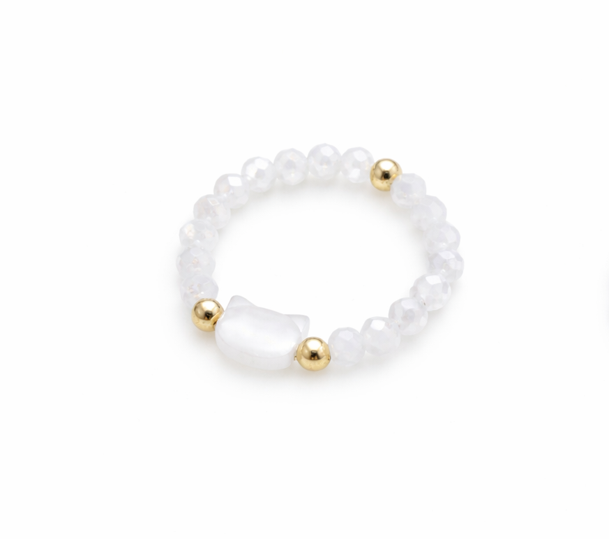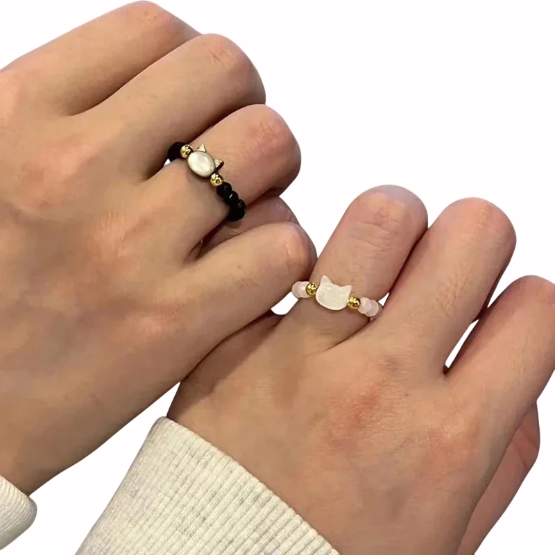 Kombinace hladkých korálků a kočičího prvku vytváří jemný, ale nápaditý vzhled. Prsten je dostupný ve dvou provedeních – s černými nebo bílými korálky, což umožňuje zvolit jemnější či kontrastnější variantu podle stylu.