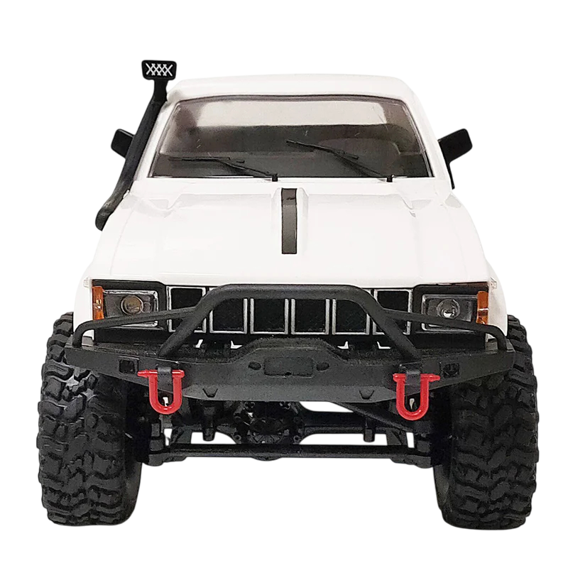 Model je vybaven LED světlomety, které umožňují jízdu i za šera nebo v noci, a výkonnou baterií 7,4V 500mAh, která zajistí přibližně 25 minut provozu. RC systém 2.4G s dosahem až 35 metrů zaručuje plynulé ovládání bez rušení signálu. Auto zvládá jízdu vpřed, vzad, zatáčení vlevo i vpravo a poskytuje výbornou stabilitu při lezení po kamenech nebo nerovném povrchu.