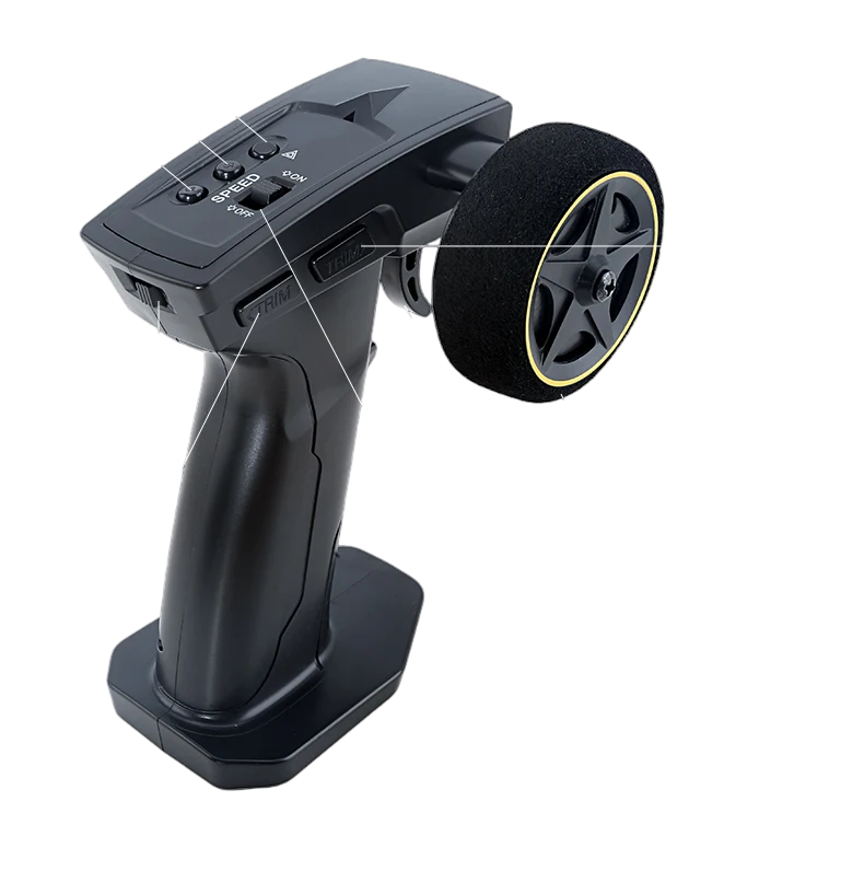 - Proporcionální dálkové ovládání 2.4G s dosahem až 20 metrů