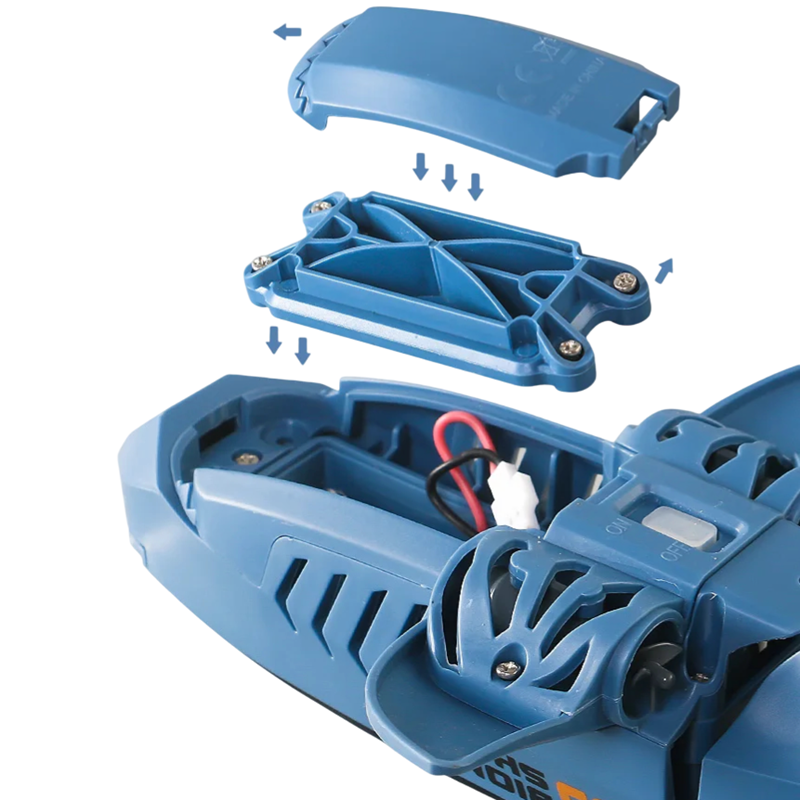 Jeho lehká, ale odolná konstrukce zajišťuje stabilní pohyb, zatímco dvě nastavitelné rychlosti umožňují volit mezi pomalým klidným pohybem a rychlým plaváním. Tento model je ideální pro děti od 6 let i dospělé, kteří si chtějí užít zábavné a realistické vodní hry.