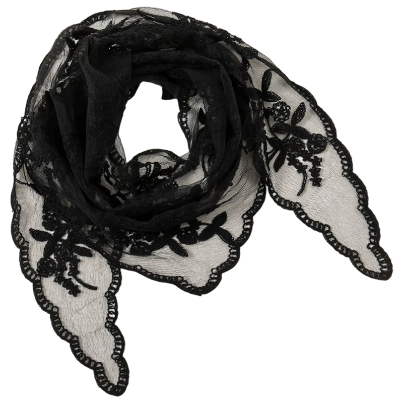 Lehký krajkový šátek s květinovým vzorem je elegantní doplněk na hlavu, krk i do vlasů vhodný pro všechna roční období. Celý popis