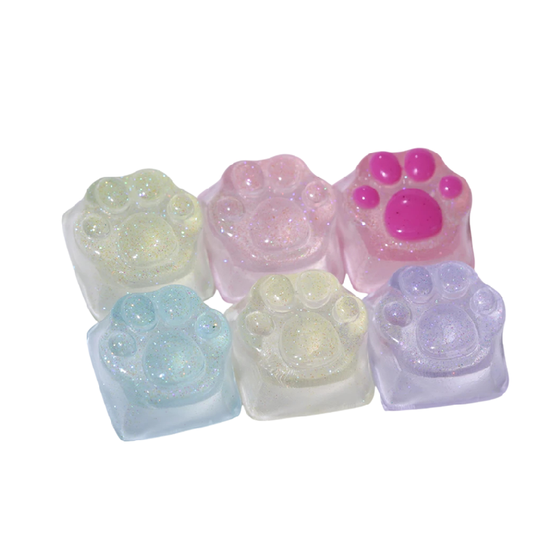 Roztomilé klávesy s motivem tlapky 6 ks RGB křížová osa průsvitné provedení pro mechanickou klávesnici dekorativní sada