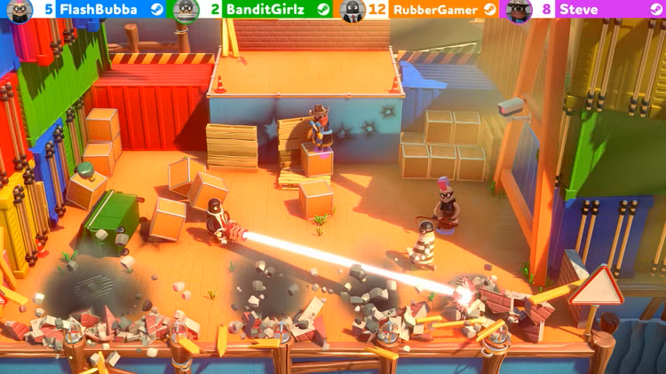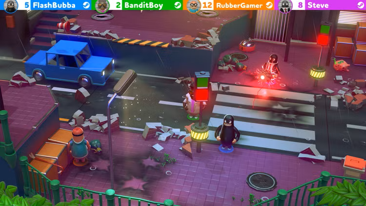 Rubber Bandits vrhne hráče do divoké párty rvačky, kde musíte kradnout, ničit a nasbírat co nejvíce peněz! Připravte se na veselý fyzikální souboj s bláznivými zbraněmi a obrovskou sestavou zločineckých postav. Vyhýbejte se smrtícím pastím, napadajte soupeřící bandity a utíkejte před policisty, abyste spáchali perfektní loupež - ale nezapomeňte si ukořistit kořist!