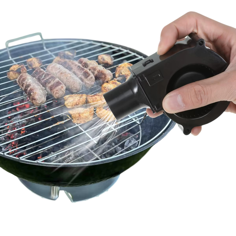 Ruční ventilátor na grilování je praktický pomocník pro rychlejší rozfoukání uhlí nebo dřevěného uhlí při přípravě jídla na grilu. Díky kompaktní konstrukci je vhodný pro venkovní grilování, kempování i piknikové vaření. Ventilátor pomáhá zvýšit proudění vzduchu směrem k žhavým uhlíkům a tím podpořit hoření.