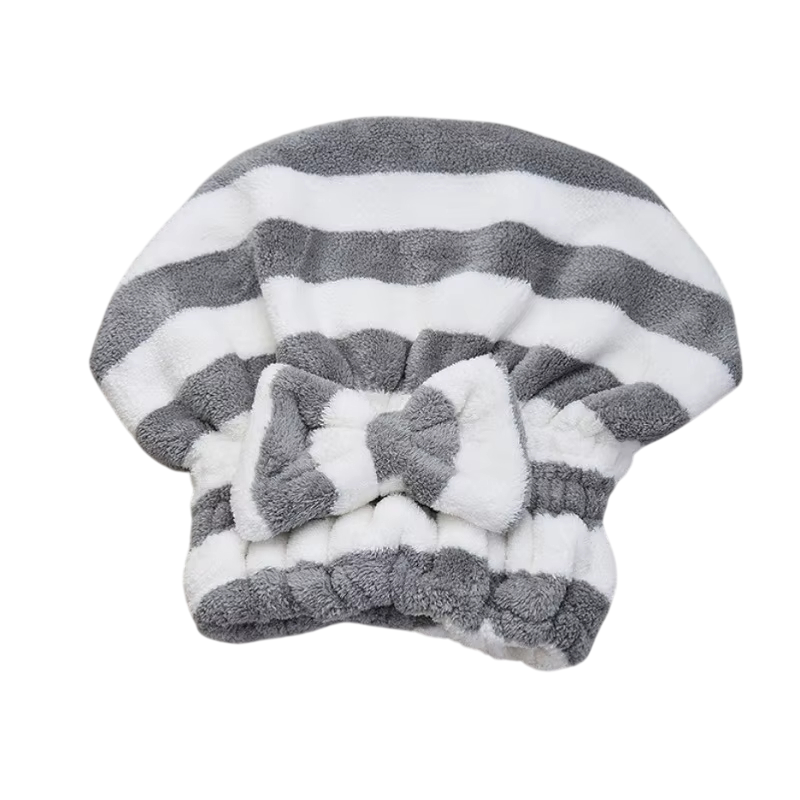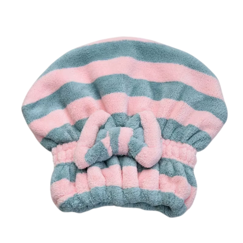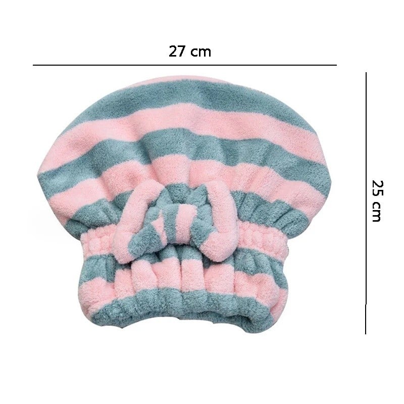 Ručník na vlasy ve formě čepice pruhovaný 25 x 27 cm fleece rychleschnoucí savý turban na vlasy pro použití po koupání i sprchování