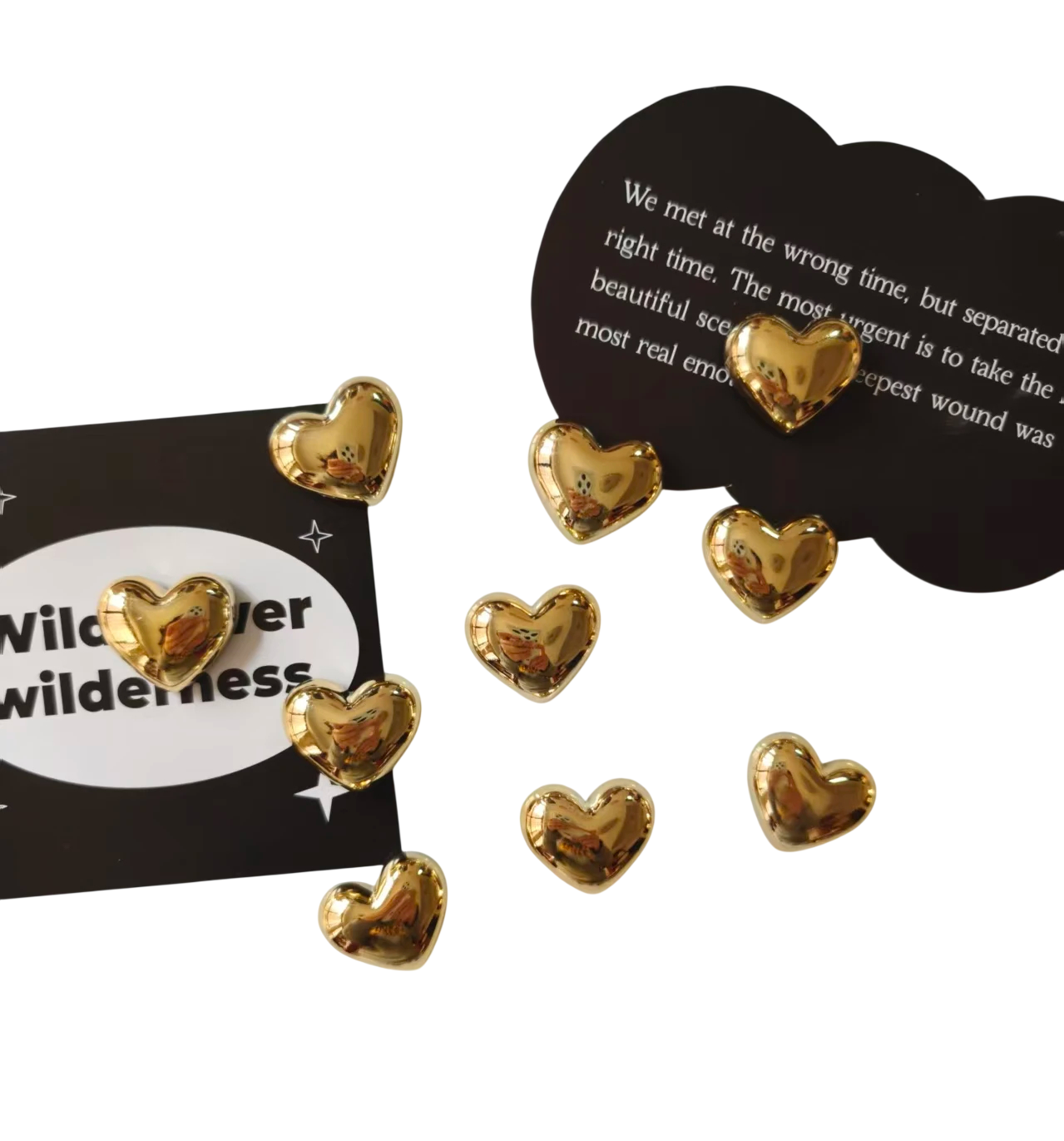 Každý kus má typický hvězdicový tvar s jemně zaoblenými hranami a hladkým povrchem. Díky tomu působí kompaktně a esteticky. Lesklý povrch dodává magnetkám výraznější vzhled, který vynikne při umístění na světlém i tmavém podkladu.