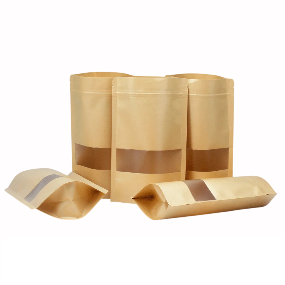 Sada 100 ks papírových sáčků 20×30 cm se zipovým uzávěrem a okýnkem hnědo béžová na balení potravin a drobností