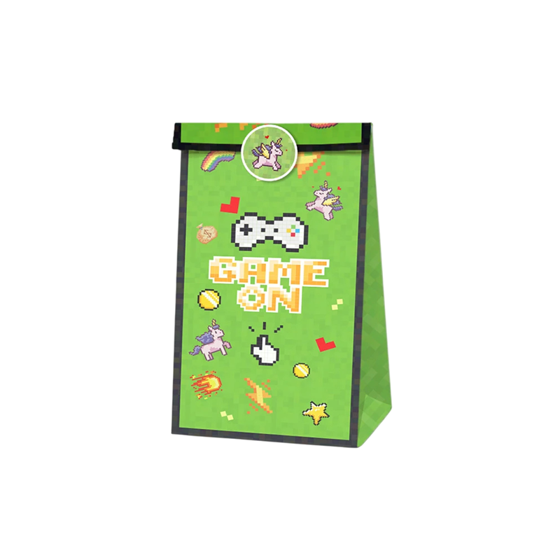 - Obsah balení: 12 ks papírových sáčků + 18 ks kulatých samolepek s herními motivy