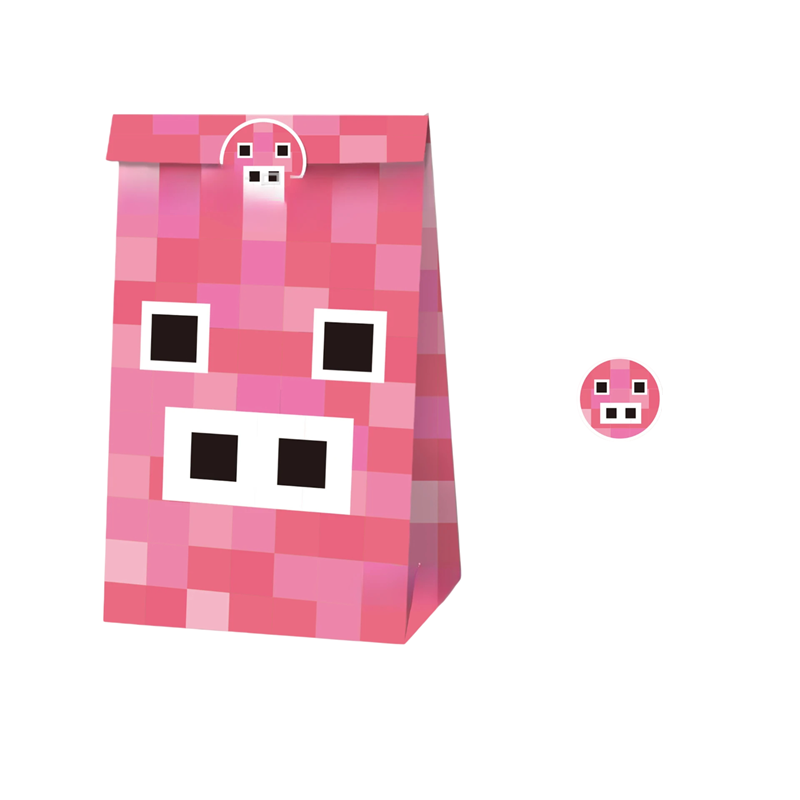 - Obsah balení: 12 ks papírových sáčků + 18 ks kulatých samolepek s Minecraft motivem