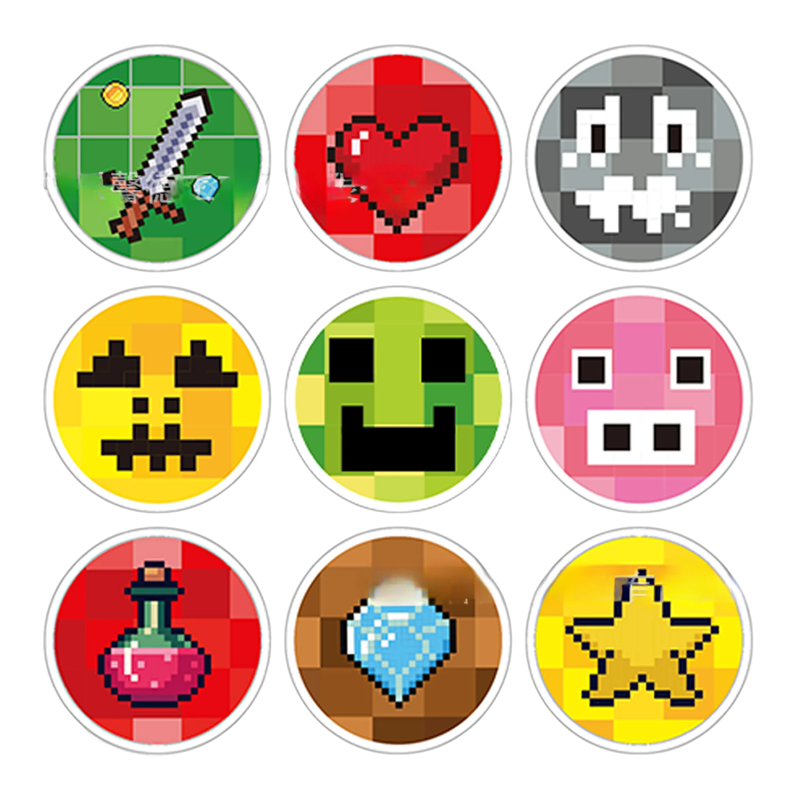 - 18 kulatých samolepek o průměru 3,8 cm s herním motivem Minecraft pro uzavření nebo dekoraci