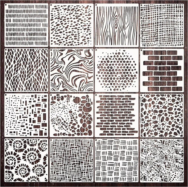 Sada 16 šablon textury 15,2x15,2 cm plastové šablony pro malování dekorací na stěny nábytek plátno a kreativní tvoření