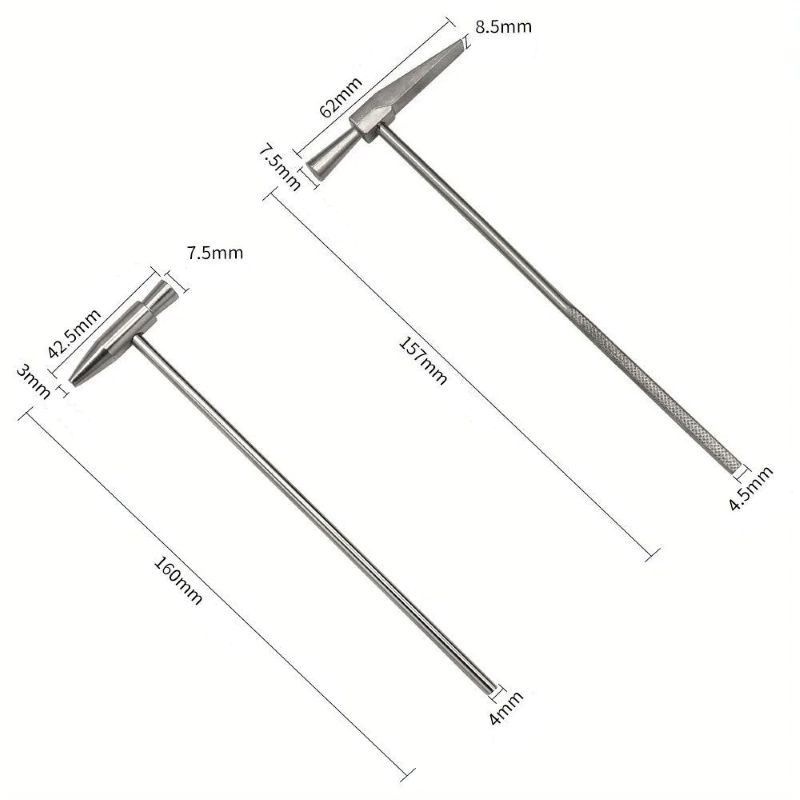 Sada dvou mini kladiv je navržena pro přesnou práci při opravách šperků, hodinek a drobných komponentů. Díky kompaktním rozměrům a úzkému profilu se jedná o nástroje vhodné pro jemné údery a detailní manipulaci.