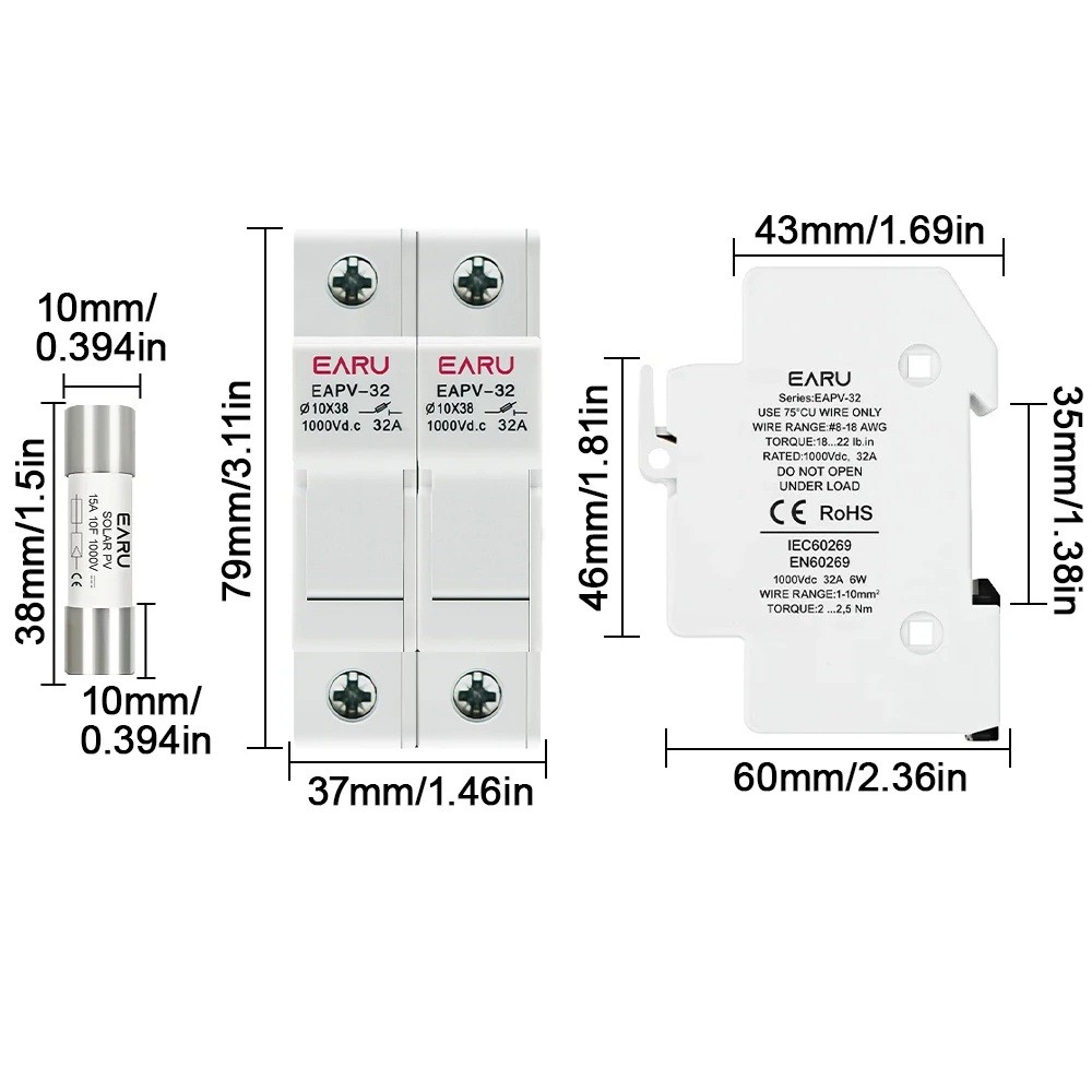 Tyto držáky pojistek vyhovují požadavkům moderních fotovoltaických systémů a umožňují snadnou a bezpečnou montáž. Díky kompatibilitě s pojistkami FV řetězců poskytují uživatelům jistotu stabilního chodu solárních instalací. Kromě své odolnosti nabízí také jednoduchou instalaci na DIN lištu, což urychluje montážní proces a zvyšuje celkovou efektivitu práce. Maximální napětí 1000 V a podpora pojistek včetně 3 A, 10 A, 15 A, 20 A, 25 A a 30 A umožňuje široké použití v různých projektech. Tento produkt je určen pouze pro držák pojistek a tvoří důležitou součást bezpečnostního vybavení fotovoltaických systémů.