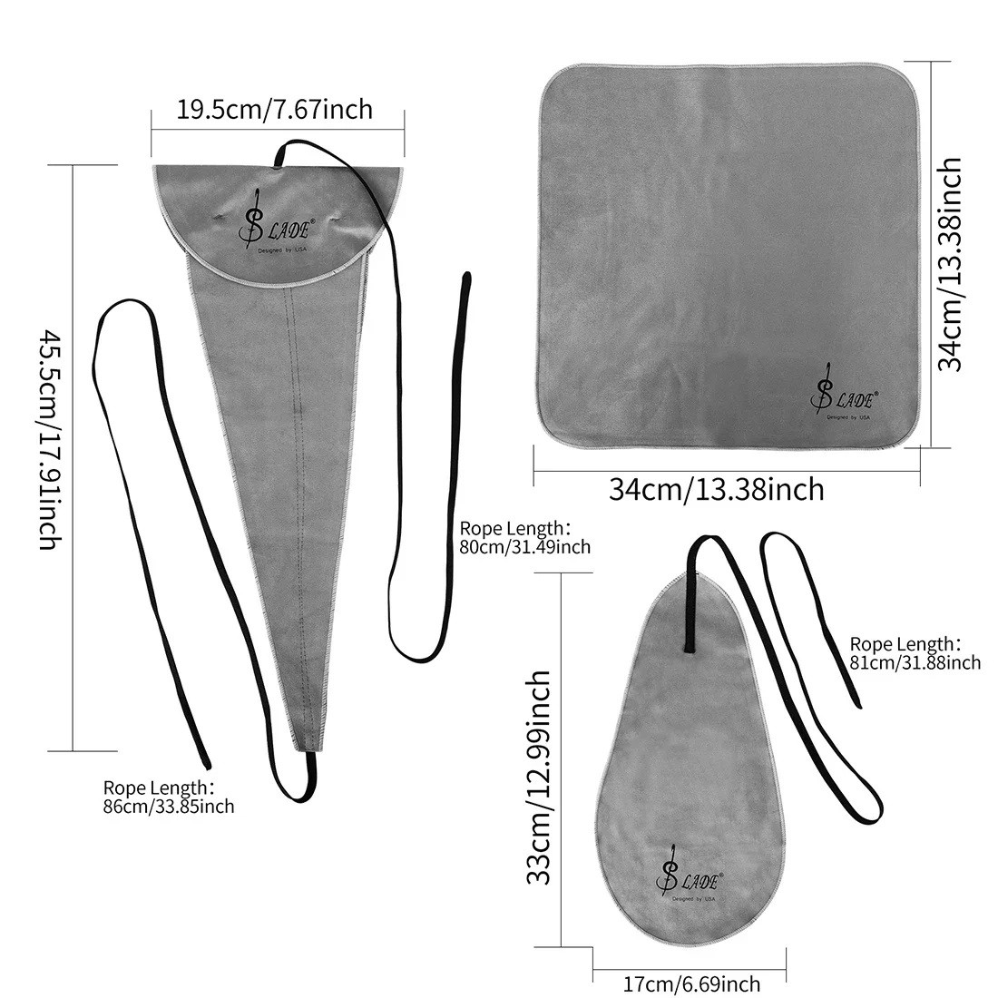 Tato univerzální sada tří čisticích hadříků je navržena tak, aby splnila všechny potřeby při údržbě dechových i dřevěných nástrojů. Hadříky jsou vyrobeny z měkké a vysoce savé bavlněné tkaniny. Největší hadřík o velikosti 19,5 x 45,5 cm je opatřen dvěma šňůrkami dlouhými 86 cm a 80 cm. Střední hadřík má rozměr 34 x 34 cm a je ideální pro povrchové čištění. Menší hadřík 17 x 33 cm má šňůrku dlouhou 81 cm. Všechny tři hadříky jsou kompatibilní se všemi značkami saxofonů, klarinetů, trumpet, fléten, pikol i hobojů.