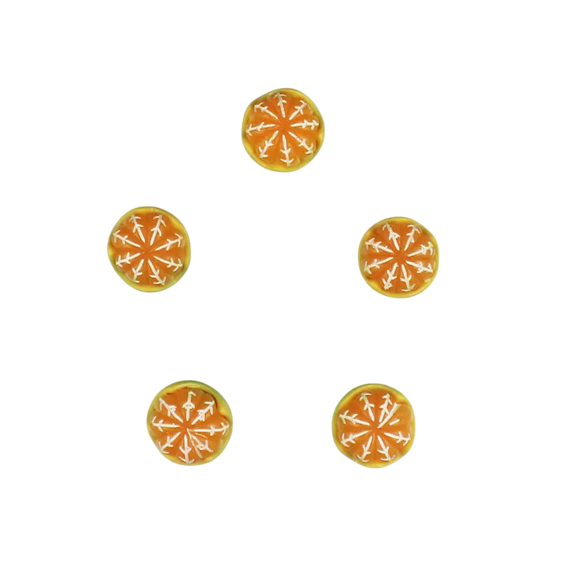Miniaturní magnetky ve tvaru mandarinky zaujmou svým detailním 3D provedením a kompaktní velikostí. Každý kus připomíná plátek citrusového ovoce s výraznou strukturou a barevným kontrastem oranžové plochy a zeleného okraje. Díky tomu působí přirozeně a zároveň vytváří zajímavý vizuální prvek na jakémkoliv kovovém povrchu.