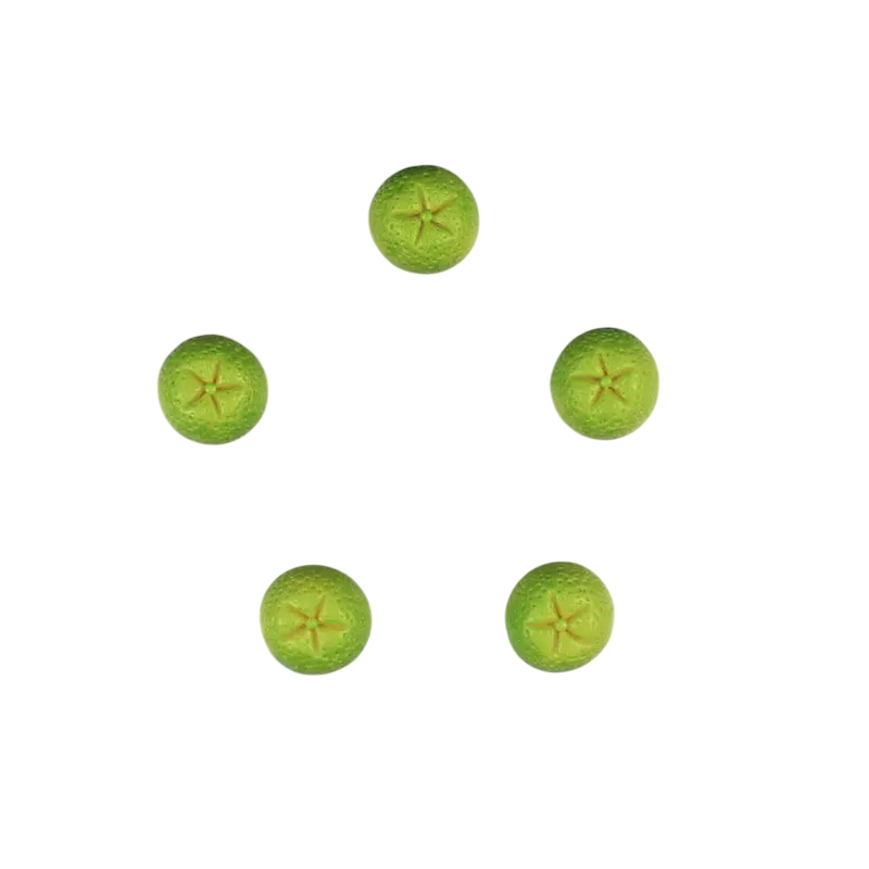 Zelené provedení dodává magnetkám odlišný vzhled oproti běžným ovocným dekoracím. Povrch je detailně zpracovaný, což podtrhuje celkový dojem. Jednotlivé kusy lze rozmisťovat podle potřeby a vytvářet si vlastní uspořádání podle prostoru.