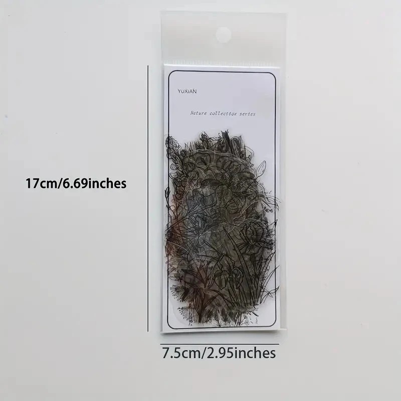 Tato sada černobílých samolepek je perfektním doplňkem pro všechny, kteří hledají elegantní a originální způsob, jak ozdobit své projekty. Sada obsahuje 40 ks samolepek o rozměrech 7,5 x 17 cm, které mají černý motiv na průhledné plastové nálepce. Motivy květin a rostlin přinášejí do vašich projektů jemnost a přírodní nádech. Díky průhlednému materiálu se samolepky snadno integrují do různých pozadí a jsou ideální pro větší dekorace, přání nebo kreativní deníky.