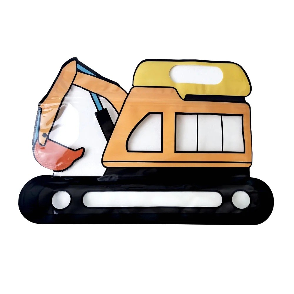 Tato plastová dárková taška ve tvaru bagru představuje originální a zábavné balení pro sladkosti, drobné dárky a malé pozornosti. Díky motivu stavebního stroje zaujme na první pohled a je vhodná zejména pro dětské oslavy, tematické akce nebo jako netradiční obal pro překvapení.