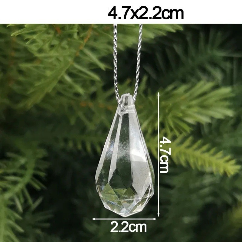 Ozdobte svůj vánoční stromek těmito průhlednými plastovými dekoracemi ve tvaru kapky. Každá kapka měří 4,7 x 2,2 cm a je vyrobena z kvalitního plastu, který zajišťuje lehkost a trvanlivost dekorace. Tento tvar kapky je ideální pro elegantní a jemné vánoční výzdoby, které přidávají krásu a třpyt každé sváteční atmosféře.