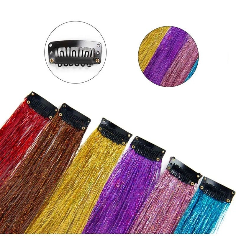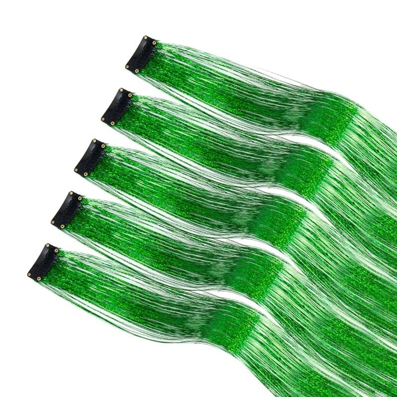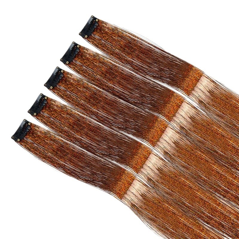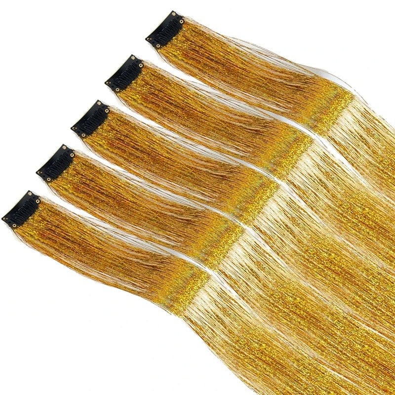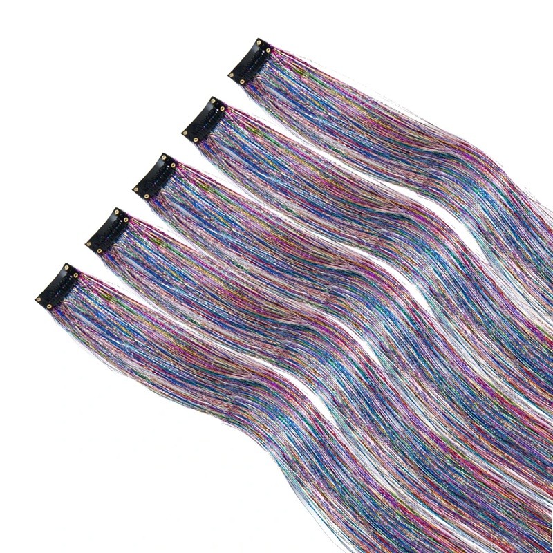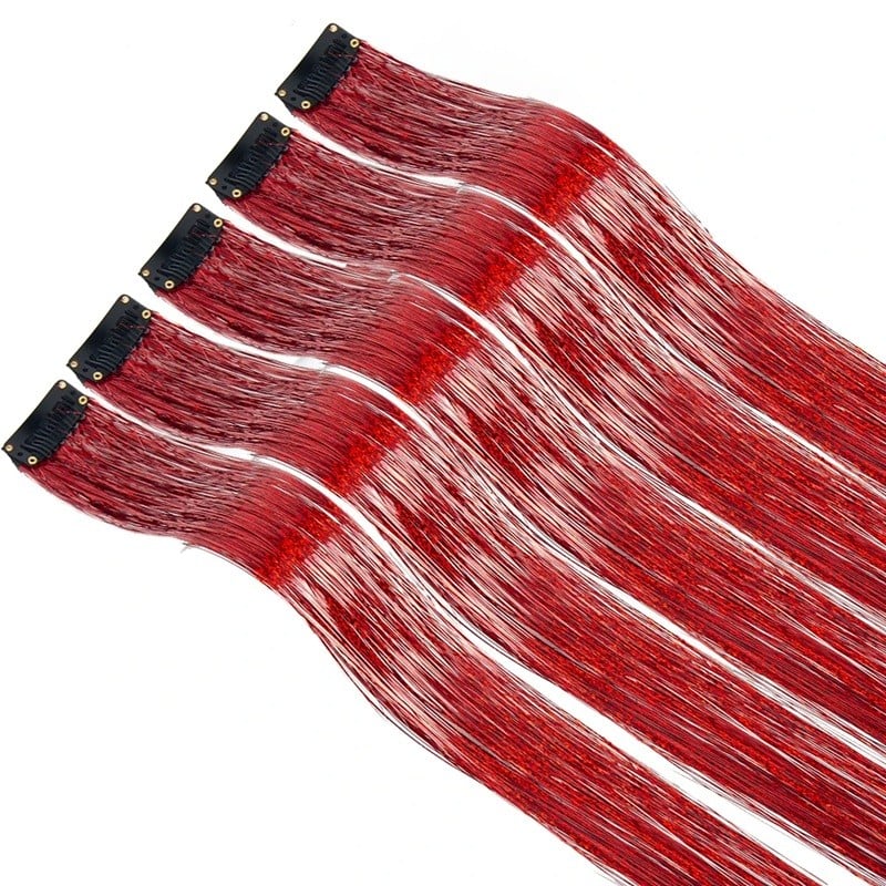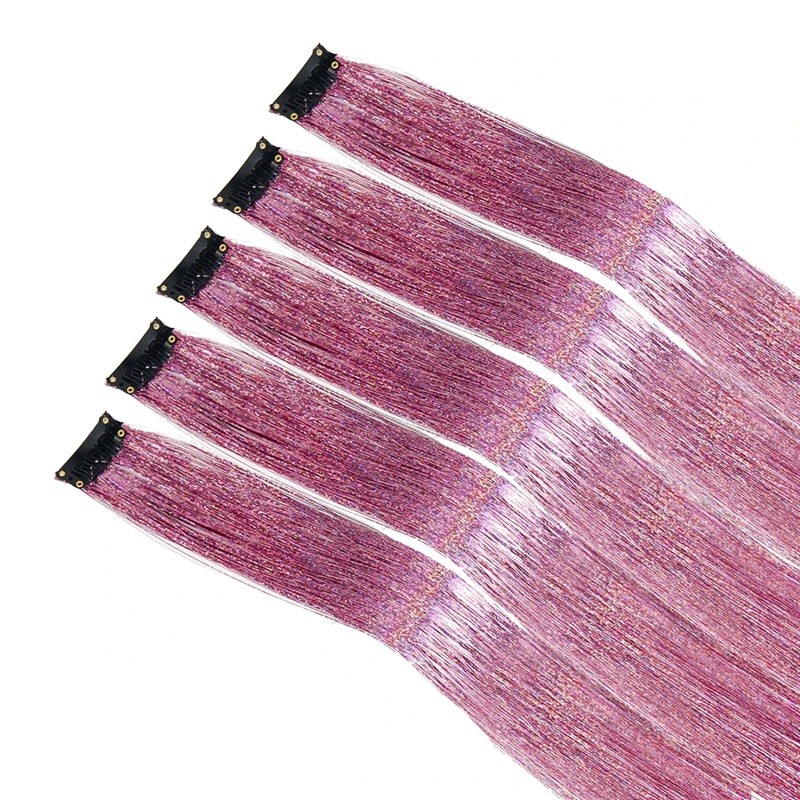 Sada 5 ks třpytivé pramínky do vlasů lamety 50 cm syntetické prodloužení vlasů klipové uchycení pro styling účesu