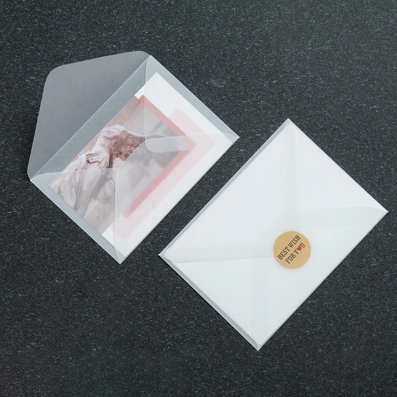 Úvodní strana Úvodní strana Dům a domácí potřeby Kancelářské potřeby Sada 50 ks průhledných obálek 17,5 x 12,5 cm poloprůhledný papír samolepicí klopa obálky na přání