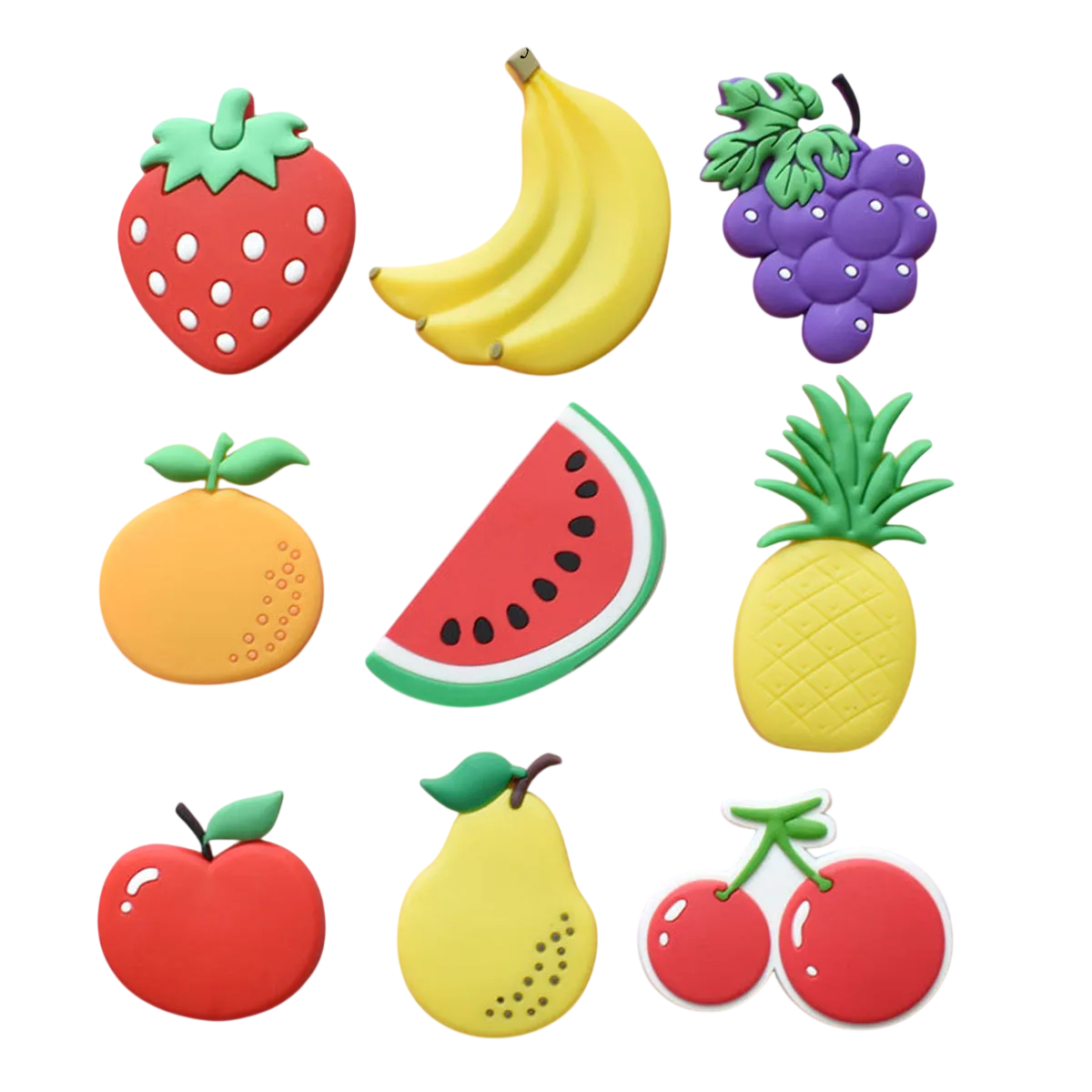 Sada magnetek ve tvaru ovoce přináší hravý a barevný prvek do každé kuchyně nebo pracovního prostoru. Díky různým motivům ovoce působí dekorativně a zároveň plní praktickou funkci při uchycení poznámek, fotografií nebo drobných dokumentů. Každý kus je zpracovaný s důrazem na detail a rozpoznatelnost jednotlivých tvarů.