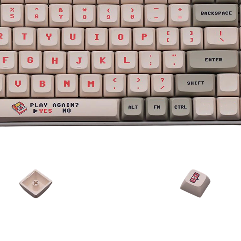 Retro grafika, pixelové symboly a dekorativní mezerník vytvářejí originální vzhled klávesnice. Sada je navržena pro MX Switch kompatibilní mechanické klávesnice. Díky vyššímu počtu kusů lze osadit více rozložení klávesnice podle konkrétního modelu. Barevná kombinace béžové, šedé a červené působí stylově a zároveň přehledně. Keycaps jsou vhodné pro úpravu pracovní i herní klávesnice.