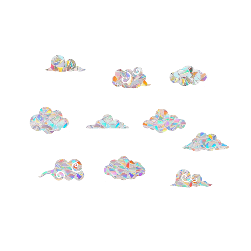 Dekorativní PVC nálepky s motivem mráčků a duhovým holografickým efektem rozzáří okna i dětský pokoj jemnými barevnými odlesky. Celý popis