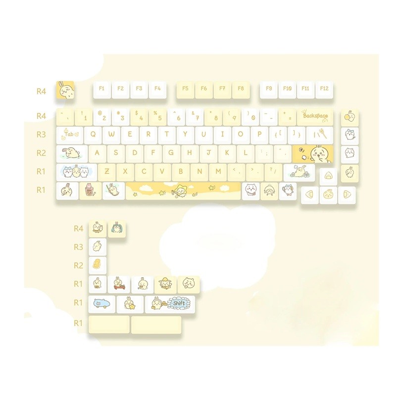 Úvodní strana Úvodní strana Příslušenství pro PC a notebooky Příslušenství pro počítač Klávesnice Mechanické klávesnice Sada krytek na klávesy cartoon motiv 95 ks PBT MOA profil krémově žlutá bílá keycaps pro mechanickou klávesnici herní i pracovní
