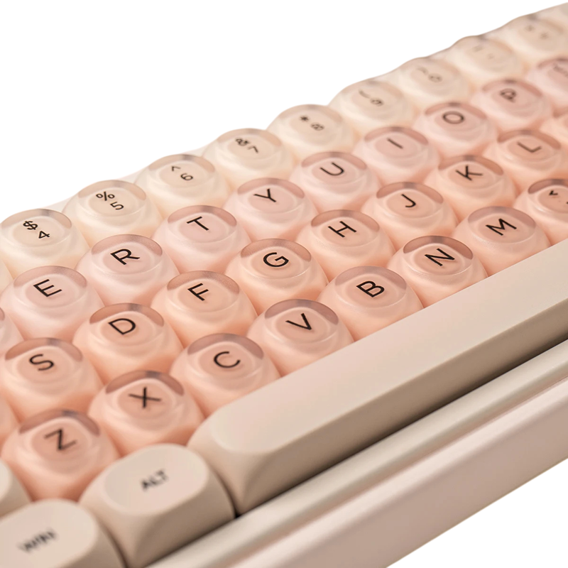 Tato sada krytek na klávesy je určena pro uživatele mechanických klávesnic, kteří hledají netradiční vzhled a pohodlné ovládání. Na první pohled zaujme kulatý tvar kláves, který dodává klávesnici originální styl. Barevná kombinace béžové a růžové působí jemně a elegantně. Sada využívá profil HOA, který je navržen pro komfortní používání při psaní i běžné práci. Materiál PBT+PC spojuje pevnost a moderní vzhled, přičemž sada obsahuje 132 ks kláves pro spínače MX.