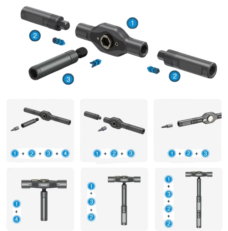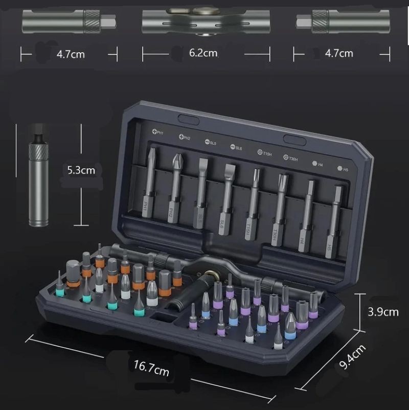 Sada magnetických šroubováků 42 v 1 představuje praktické řešení pro každodenní opravy v domácnosti i při práci s elektronikou. Díky kombinaci různých bitů a odnímatelné ráčny umožňuje efektivní práci s mnoha typy šroubů. Kompaktní úložný box pomáhá udržet všechny nástroje přehledně uspořádané. Magnetické bity usnadňují manipulaci s malými součástkami. Tato sada je vhodná pro přesné i běžné montážní úkony.