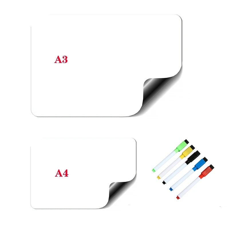 Sada magnetických tabulí na fixy A3 A4 stíratelná s 5 fixy uchycení na lednici praktická psací plocha pro poznámky a plánování
