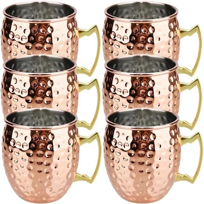 Sada nerezových hrnků tepaný povrch s uchem 500 ml 6 × 10.5 cm z nerezové oceli měděný na nápoje domácnost servírování