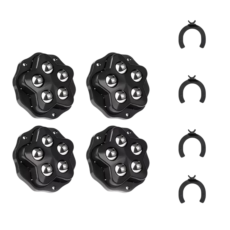 Tato sada obsahuje 4 otočná kolečka s brzdami, která umožňují snadný přesun různých kusů nábytku nebo konstrukcí. Každé kolečko je vybaveno kuličkovým otočným mechanismem, který usnadňuje plynulý pohyb a otáčení do všech směrů. Díky brzdě lze kolečka v případě potřeby zajistit a zabránit nežádoucímu pohybu. Otočný systém umožňuje jednoduché manévrování i v omezeném prostoru. Sada je určena pro použití všude tam, kde je potřeba mobilita kombinovaná se stabilitou.