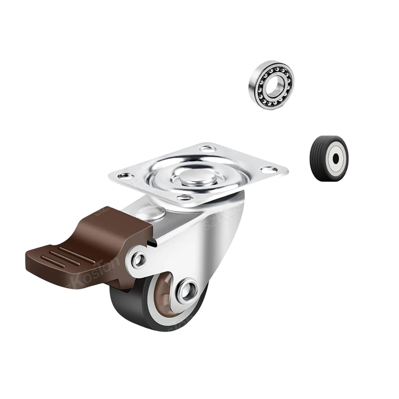Integrovaná brzda umožňuje bezpečné zastavení kolečka a zabraňuje samovolnému pohybu. Otočný mechanismus usnadňuje manévrování a umožňuje pohodlnou změnu směru bez nutnosti nadzvedávání. Kolečka jsou vhodná pro menší skříňky, mobilní kontejnery, úložné boxy i pracovní vozíky. Hnědé provedení kola působí nenápadně a dobře zapadne do většiny interiérů.